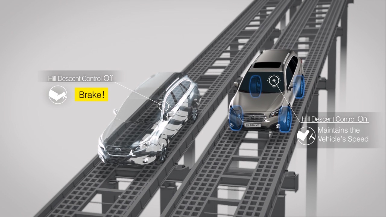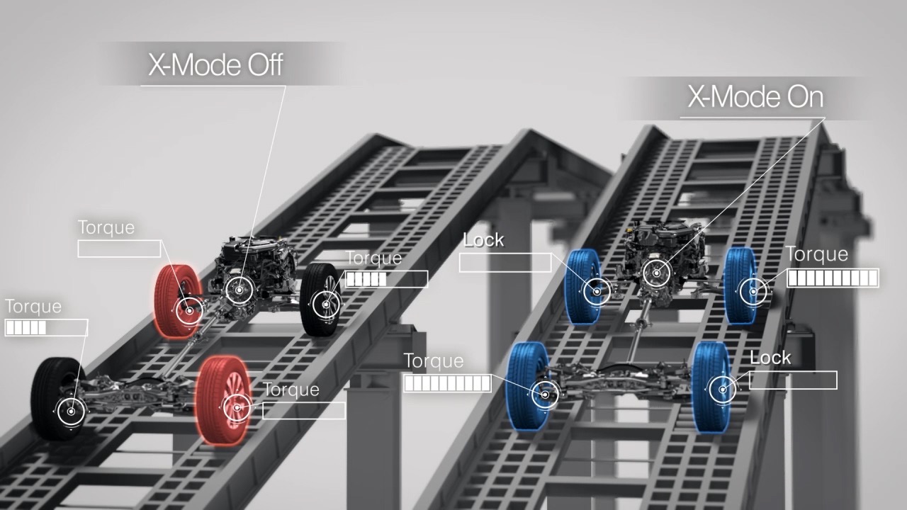 X-Mode assists in those cases where the vehicle starts moving faster as it drives downhill, like when driving down snowy roads or gravel slopes. Hill Descent Control maintains the vehicle’s speed so the driver can focus more on steering.