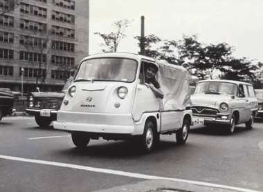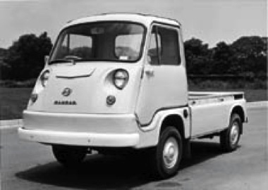 In February 1961, the Subaru Sambar made its debut. The Sambar, based on the Subaru 360, was a truck that was outstandingly pleasant to ride and stable to drive. Compared with other four-wheel minitrucks of its day, the Subaru Sambar had the lowest deck body and the roomiest cargo bed. With its ability to neatly negotiate narrow street corners, this minitruck was a breath of fresh air in the industrial world. The following September, the Sambar Light Van was launched as a vehicle for not only commercial use, but also leisure use. With the Sambar, Subaru became firmly established as a manufacturer of light passenger vehicles.