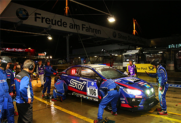 Starting from pole position, the team experienced mechanical trouble early on, however the team of mechanics and four drivers, Carlo van Dam (Netherlands), Tim Schrick (Germany), Hideki Yamauchi (Japan) and Takuto Iguchi (Japan), closed the gap and regained the top position. Weather conditions worsened later, but the Symmetrical AWD (All-Wheel Drive) of the WRX STI proved its worth by passing competitors in higher classes. The car suffered engine trouble just an hour before the finish, but it returned to the course to win the SP3T class in 62nd position overall.